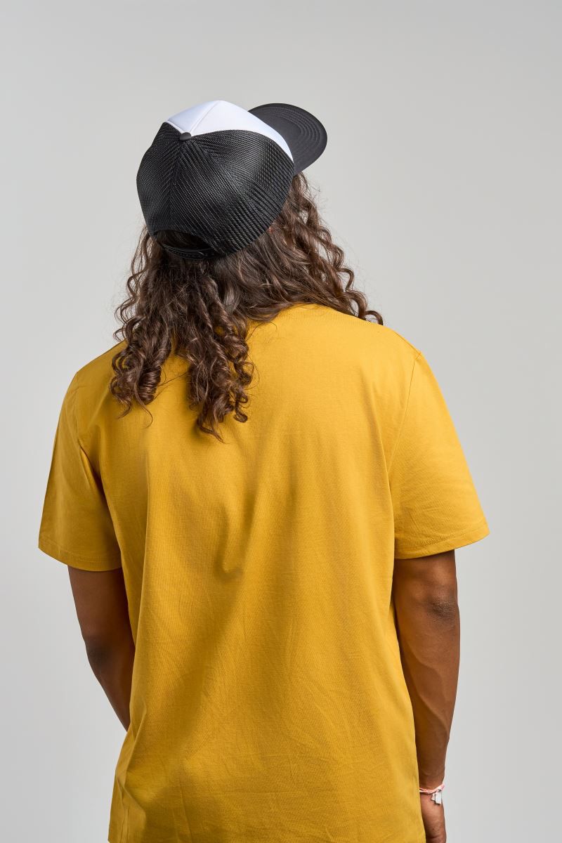 5 Panel Trucker Kappe Schirminnenseite aus recyceltem Plastik, höheres Kappenprofil, weisse Schaumstoff Kappenfront, 6 Ziernähte am Schild, Schweissband aus recyceltem Polyester, recycelter Snapverschluss, TearAway Label, Handwäsche, nicht bügeln, nicht trocknergeeignet, nicht chemisch reinigen 100% recyceltes Polyester, Seiten und Rückseite: 100% recyceltes Polyester Netz Größen: onesize