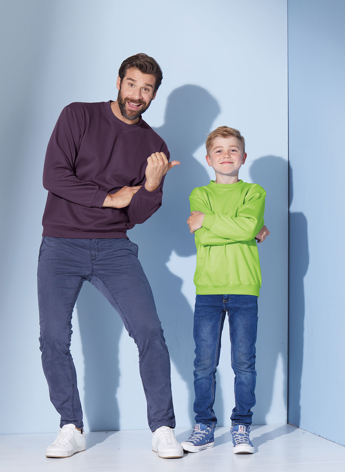 Klassisches Kinder Komfort Rundhals-SweatshirtHochwertige Sweat-Qualität mit angerauter InnenseiteKlassischer Schnitt mit robusten KappnähtenBündchen mit ElasthanHalbmondbesatz im Nacken, Necktape80 % ringgesponnene Baumwolle, 20 % Polyester, 320 g/m² 60° waschbar