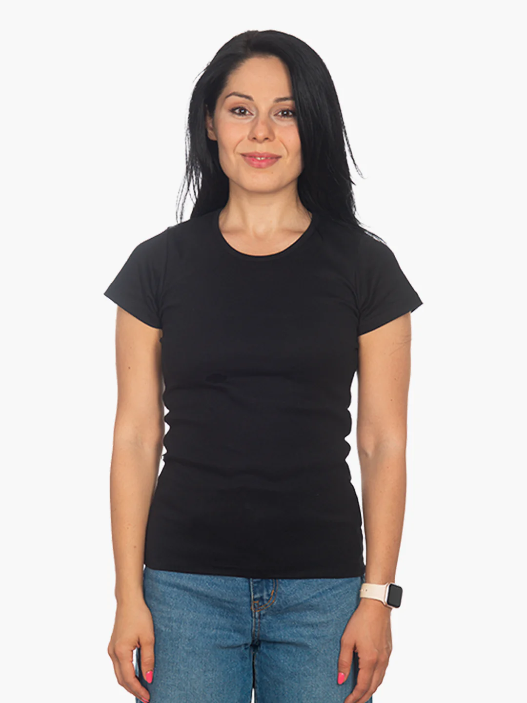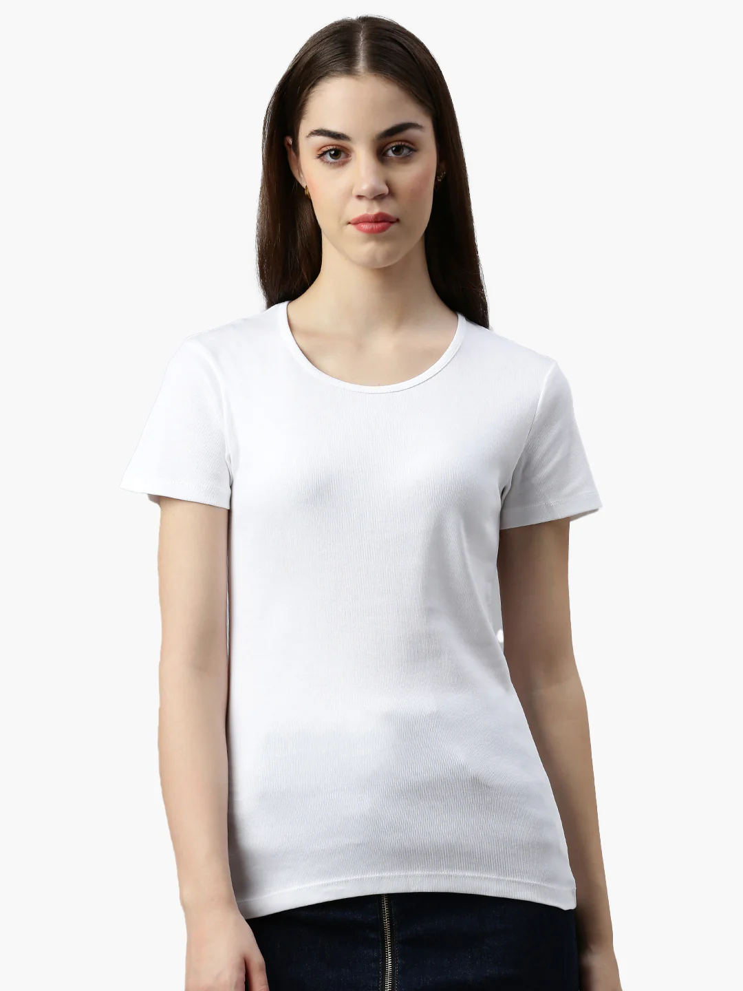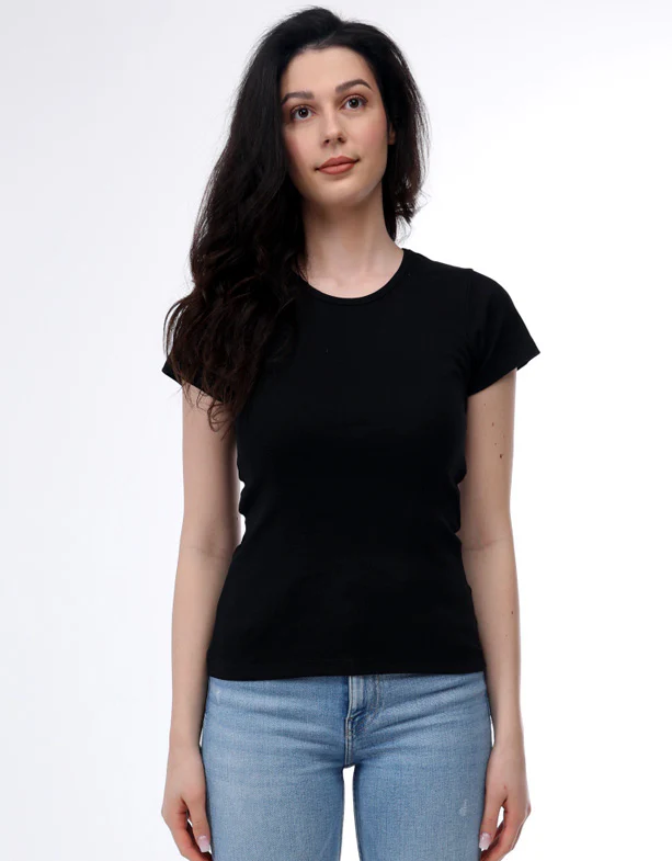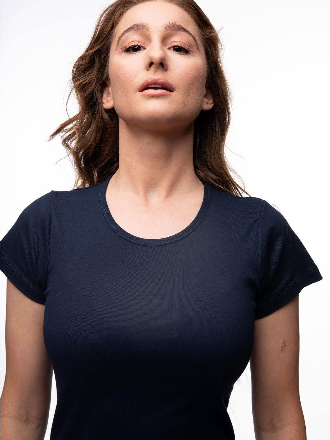 Klassisches Damen Rib T-Shirt mit fein geschnittenem Rundhals Ausschnitt.