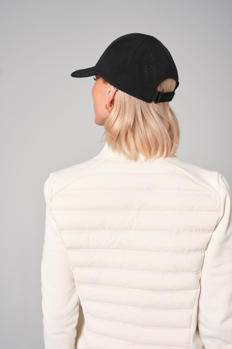 Gebogener Schirm, weiches Schweissband, weicher, nicht strukturierter Kopfbereich, gelaserte Luftlöcher, Rip-Strip™ Klettverschluss, D-Ring, feuchtigkeitsregulierend, Tear Away Label, nur mit einem Schwamm reinigen, nicht waschen