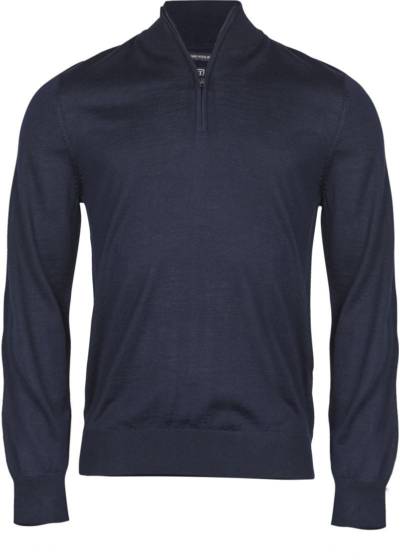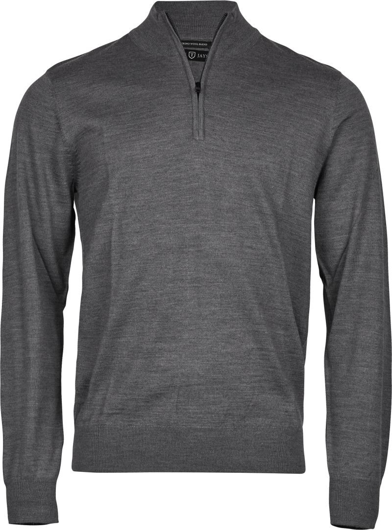 Klassischer Strickpullover in formstabiler Merino-Mischqualität, taillierter Schnitt, Rippstrickbündchen an Ärmel und Saum, Stehkragen mit 1/4 SBS Reissverschluss, formgestrickt, italienisches Mischgarn, 30° waschbar im Wollprogramm