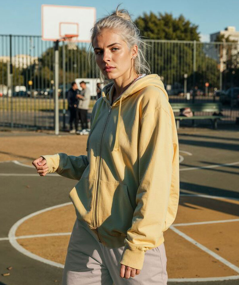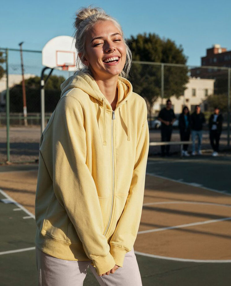 Der Stoff mit einem Gewicht von 350 g/m² bietet eine weiche, bequeme Passform.