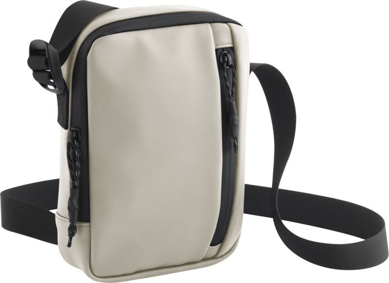Wasserabweisendes Material, wasserdichte Reissverschlüsse, längenverstellbarer Tragegurt, Netztasche innen, Vordertasche mit Reissverschluss, Reissverschlussanhänger mit reflektierenden Details, Tear Away Label,