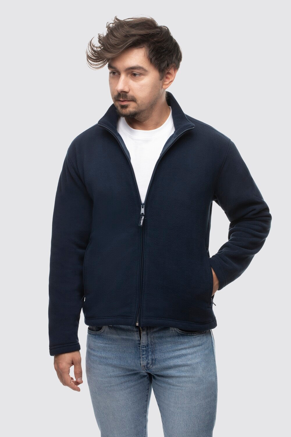 Leichte Polarfleecejacke mit Kordelzug am unteren Bund. Stehkragen und 2 Aussentaschen mit RV