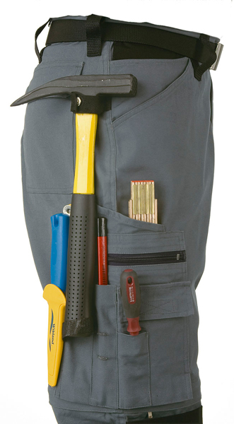 13 Taschen, Fronttaschen mit einsteckbaren multifunktionellen Hängetaschen und Werkzeugfächern sowie Knietaschen aus CORDURA®, Gesässtaschen, beidseitig grosse Taschen mit RV, Meter- und Handytasche, Schlaufen und Zusatzfächern, Gurtschlaufen und spezielle Schlaufen aus strapazierfähigem Oxford-Nylon, Knietaschen passend zu Knieschoner 1902!, multifunktionell, robust, bequem, praktisch, trendig