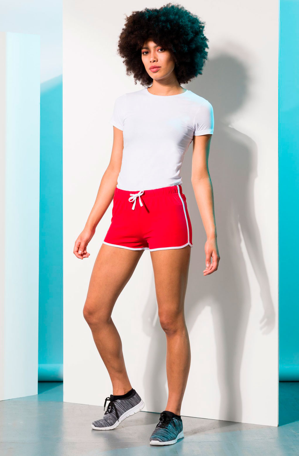 Single-Jersey, Damen-Retro-Short mit Kontrastbündchen und Kordel, elastischer Bund, entfernbares SF (Skinnifit) Label, 40 °C waschbar