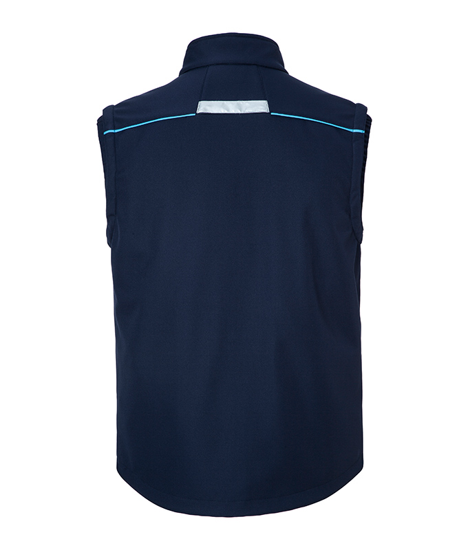 Funktionelle Softshell Weste mit warmem Innenfutter Oberstoff: 100% Polyester, Futterstoff: 100% Polyester, Wattierung: 100% Polyester Robustes strapazierfähiges Softshellmaterial, Wind- und wasserabweisend (2.000 mm Wassersäule), Atmungsaktiv und wasserdampfdurchlässig (2.000 g/m²/24h), Stehkragen innen mit weichem Fleece, Verlängertes Rückenteil, Durchgehend unterlegter Reißverschluss mit Windschutzblende und Kinnschutz, Seitentaschen, Brusttasche und Innentasche mit Reißverschluss, Brusttasche mit Klappe, Handytasche innen, Reflexelemente am Vorder- und Rückenteil, Reißverschluss zur Rückenveredelung, Knöpfe und Reißverschlüsse: Um Beschädigungen am zu bearbeitenden Produkt zu vermeiden, sind alle Knöpfe und Reißverschlüsse verdeckt verarbeitet. Grössen: XS-6XL