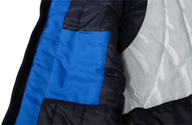 Oberstoff: 100% Polyester, Futterstoff: 100% Polyester, Besatz: 100% Polyamid Cordura, Wattierung: 100% Polyester