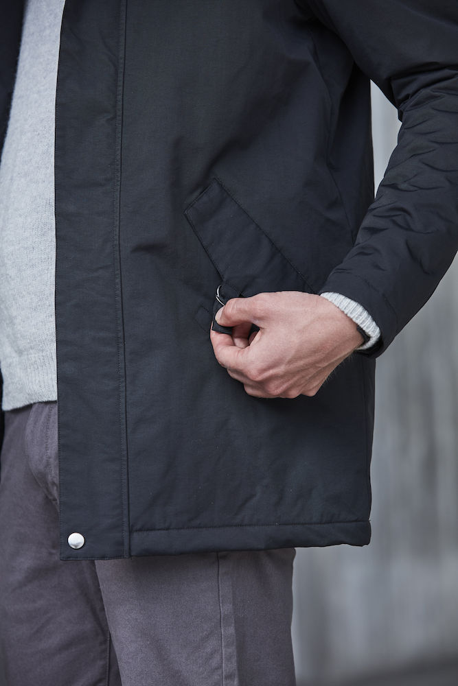 Parka longue doublée avec capuche. Imperméabilité 5000 mm / Respirabilité 3000 grs/m2/24h. Doublure capuche très douce. Poches avec fermeture aimantée et poche intérieure zippée. Doublure matelassée. Capuche et taille réglables. Système smartphone.