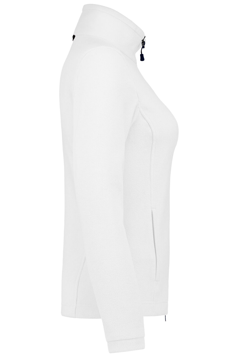 Leichte, angenehm weiche Fleecejacke ECO für Damen, mit hochwertigem Zwei-Wege-Frontreißverschluss, seitlich verdeckten Reißverschlusstaschen, Teilungsnähten auf Vorder- und Rückenteil für perfekte Passform, Nackenband und Aufhängeband im Nacken. Alle Reißverschlüsse von YKK®. Hergestellt aus besonders feinem, hochwertigem 200er-Microfleece, aus nach GRS-Standard zertifiziertem, recyceltem Polyester.