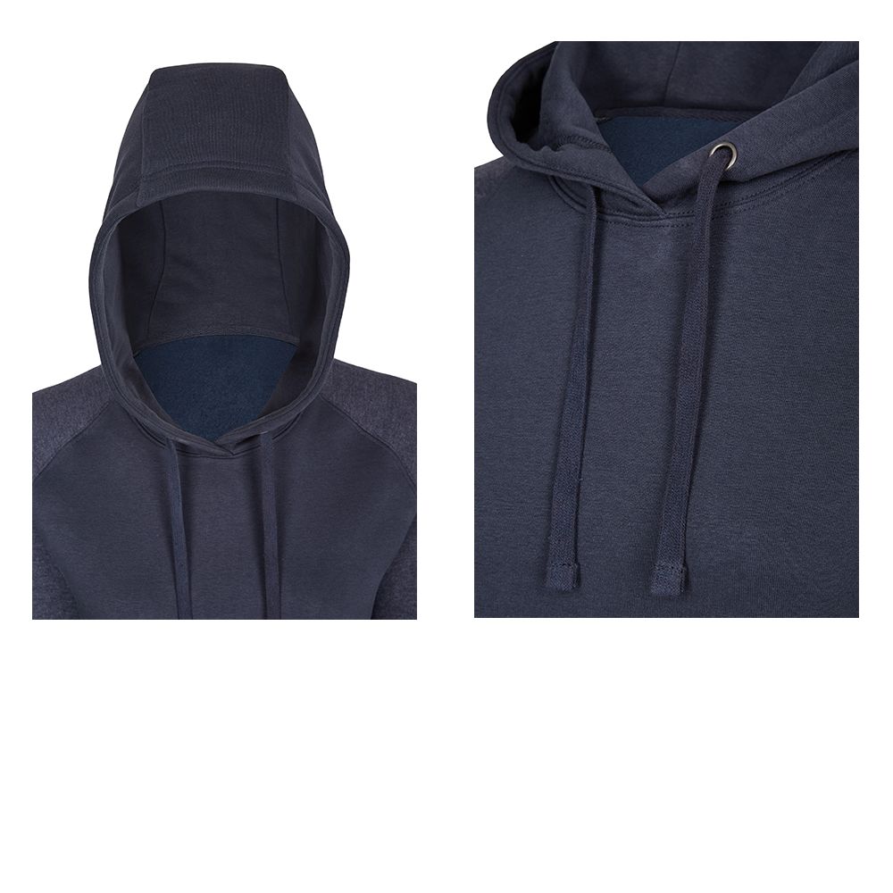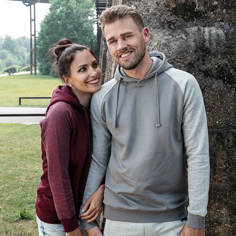 Coton ring-spun, Coupe moderne, Capuche double couche à 3 pièces, pour un port plus confortable, Cordon plat de la même couleur, Tricot côtelé 2×1 aux bouts des manches et à la taille, Bande de propreté, Manches en raglan, Coutures latérales, Étiquette de taille neutre au col, décalée latéralement, Étiquette miners mate détachable, Pré-rétréci, Lavé à la silicone et aux enzyme, Certifié Oko-Tex Standard 100, Lavable à 40 °C
