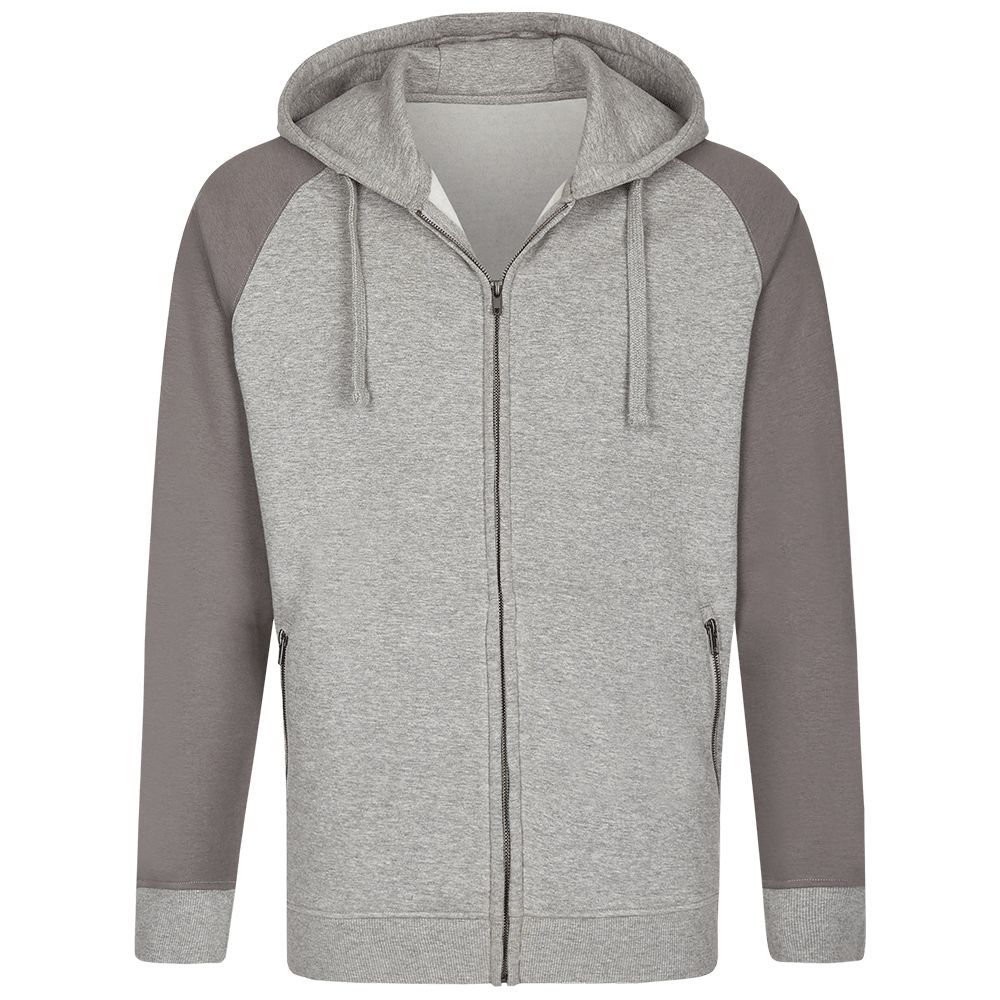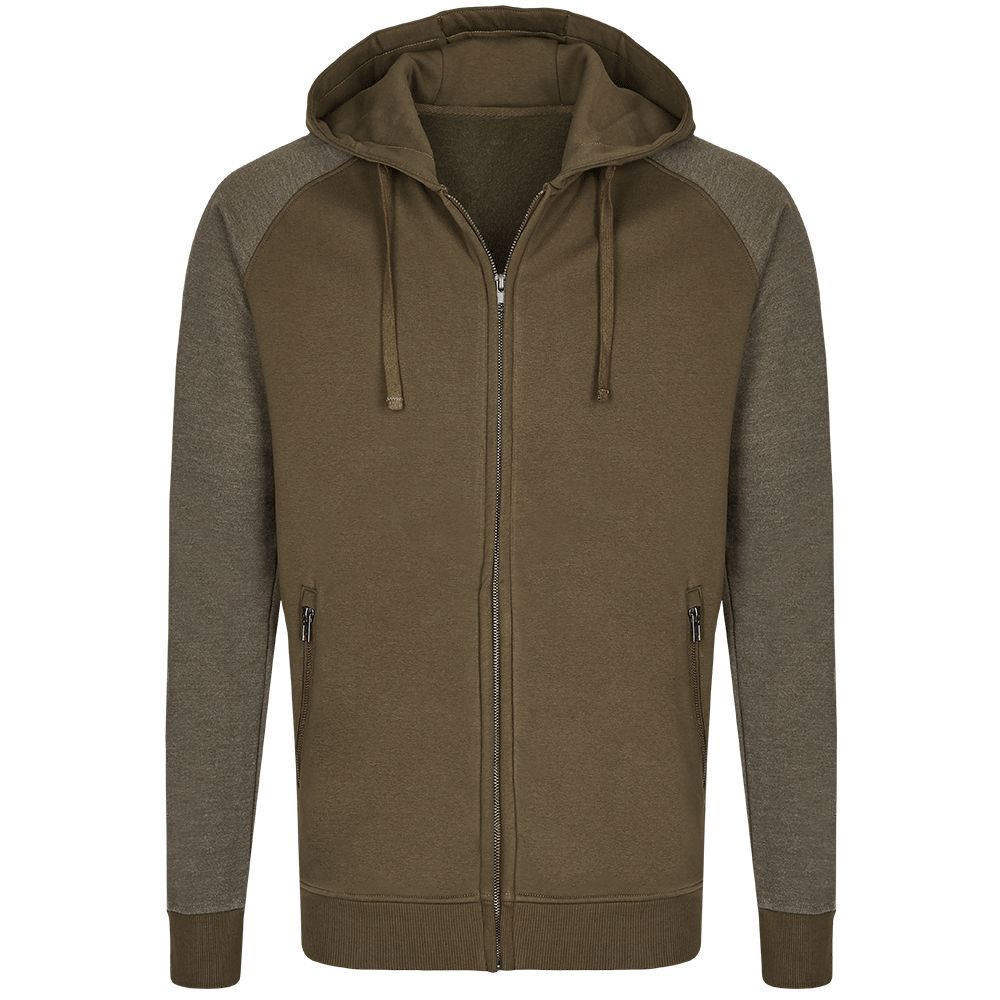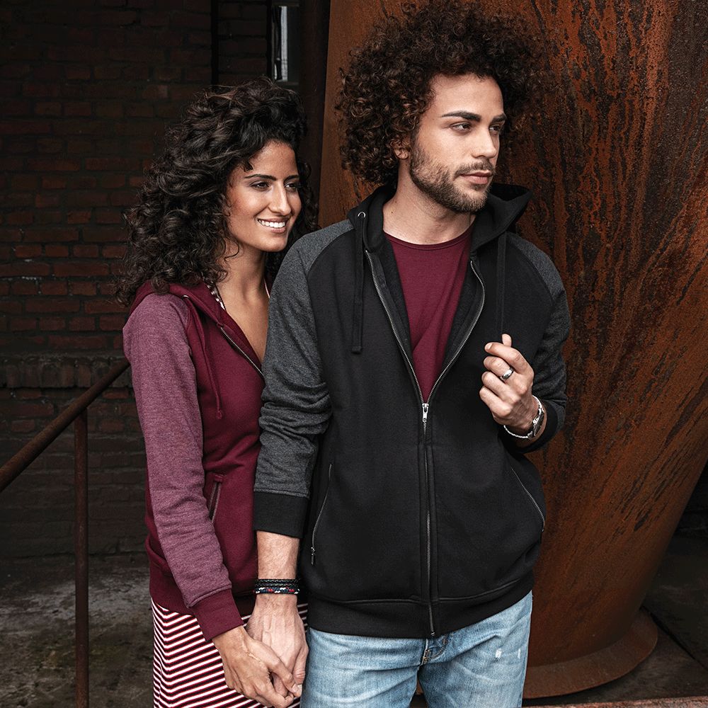 Coton ring-spun, Coupe moderne, Capuche double couche à 3 pièces pour, un port plus confortable, Cordon plat de la même couleur, Fermeture zippée en métal, Deux poches latérales avec fermeture à glissière, Tricot côtelé 2×1, Bande de propreté, Manches en raglan, Coutures latérales, Étiquette de taille neutre au col, décalée latéralement, Étiquette miners mate détachable, Pré-rétréci, Lavé à la silicone et aux enzyme, Certifié Oko-Tex Standard 100, Lavable à 40 °C