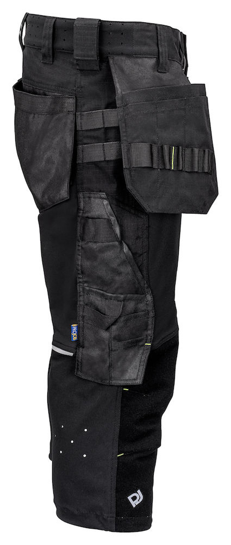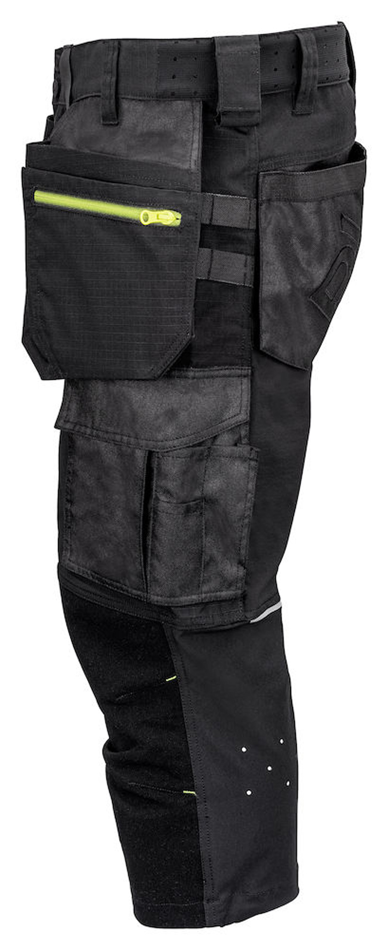 Pantalon 3/4 en full stretch pour un maximum de liberté de mouvement et de confort. Coupe moderne. Stretch dans les 4 sens sur les cuisses et le siège, stretch dans les 2 sens à l'arrière des genoux. Les côtés en haut ne sont pas en stretch pour donner de la stabilité au pantalon. Ouvertures d'aération avec fermetures éclair le long des deux côtés des jambes avec doublure en mesh, également aération à la taille et à l'arrière des genoux. Poches sur les jambes, sur la poche latérale gauche pour outils et stylos, également une poche pour téléphone avec fermeture aimantée et un support pour la fixation de la carte d'identité. Sur le côté droit poche pour mètre pliant et poche pour outils avec bouton couteau. Possibilité d'attacher le système MOLLE des deux côtés, également possibilité d'ajouter des boucles marteau avec velcro. Détails réfléchissants pour une visibilité accrue. Genoux préformés. Poches internes pour genouillères, réglables sur deux niveaux de hauteur. Les genoux sont renforcés de Kevlar extensible pour une durabilité et un confort accrus.
