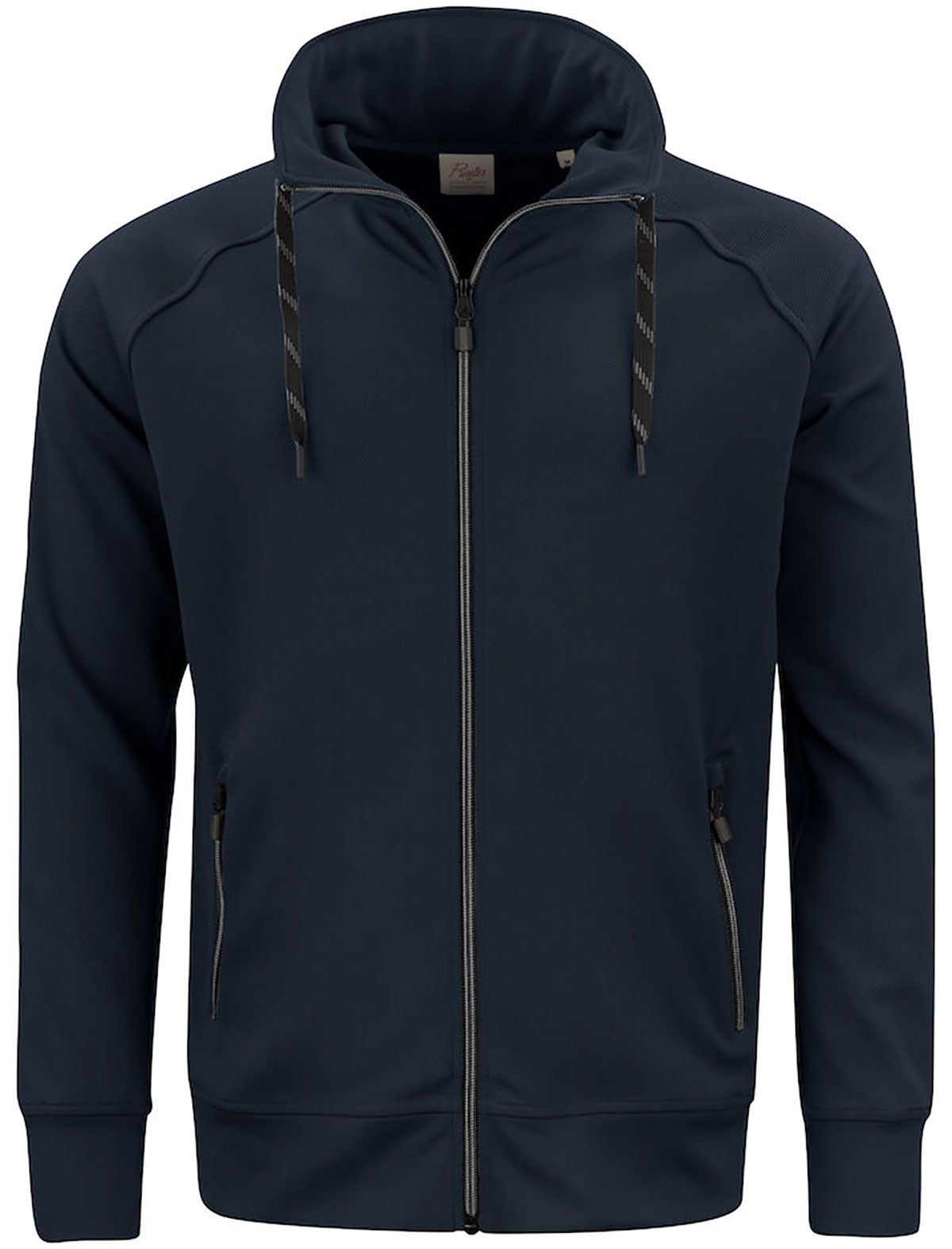 Pull sportif en polyester à fermeture éclair complète, avec manches raglan et cordon de serrage bicolore. Fermeture éclair sur le devant et poches zippées avec tirette contrastante. Fermeture éclair cachée dans le col pour remplacer facilement le cordon de serrage.