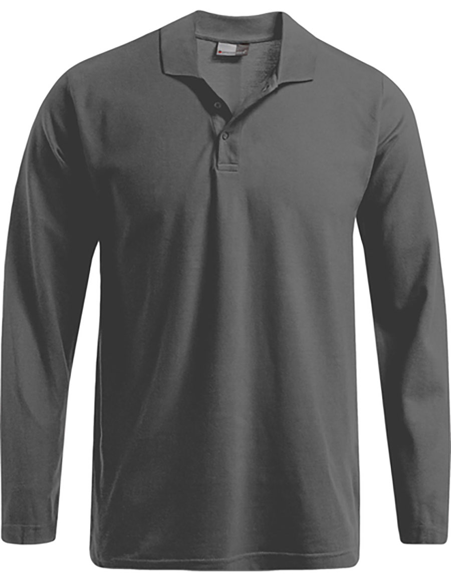 Polo manches longues, patte avec 3 boutons ton sur ton, piqué, 100 % coton, 220 g/m², S–XXL.