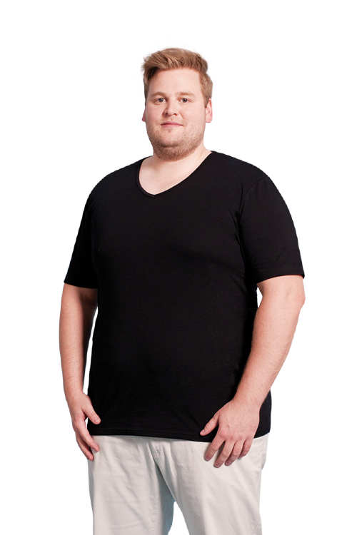 Tee-shirt col V-, coupe près du corps, single jersey, 95% coton, 5% élasthanne, 180 g/m², S–5XL.