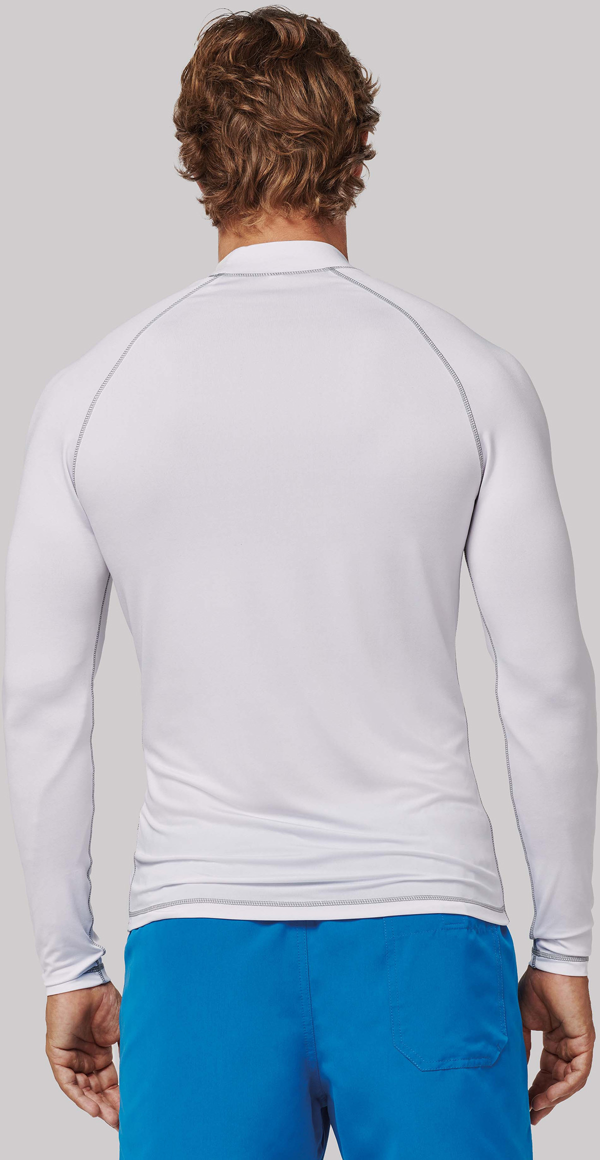 Enganliegende Passform, hoher Kragen, Raglanärmel mit Nähten in Kontrastfarbe, elastische Schnalle im vorderen Saum, durch die die Kordel einer Shorts zur Stabilisierung gezogen werden kann