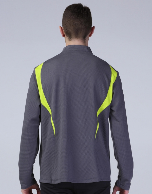 t shirt fonctionnel à longues manches, col droit, fermeture à glissière 1/4 avec protège-menton, soufflet contrasté devant et dos, motif à l’avant bras, surpiqûre au bord de la manche et à la base, coutures latérales, convient pour la broderie et l impression