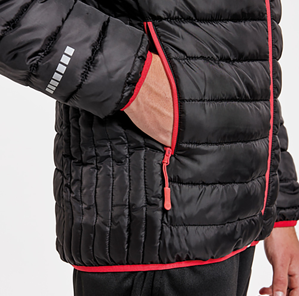 - Poches latérales avec fermeture éclair et tirette de couleur contrastée