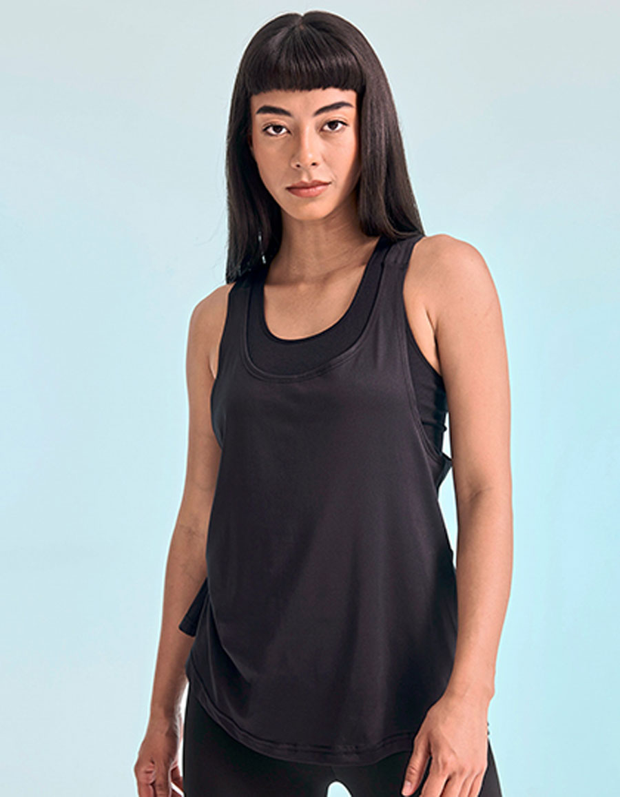 Étiquette détachable, Dos à bretelles en V, ourlet + emmanchures larges, Coutures plates, Encolure arrondie, Jersey simple, Lavable à 30 °C