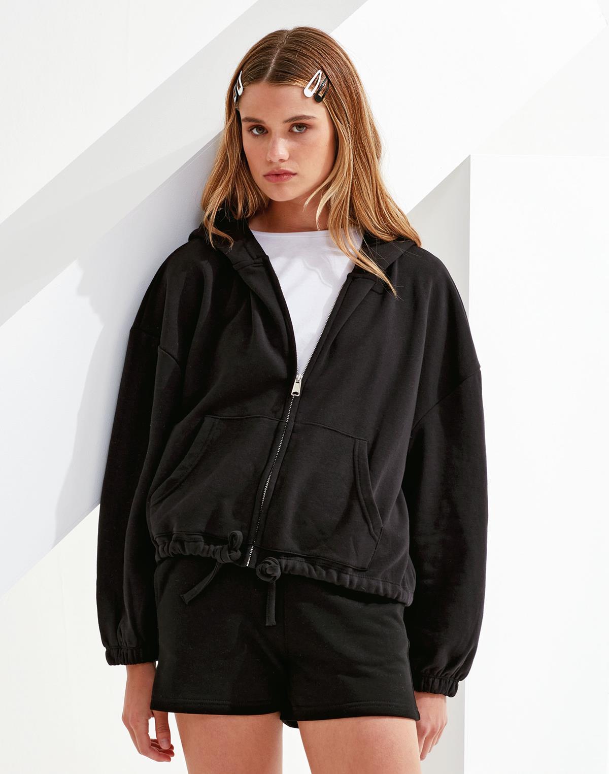Sweat à capuche oversize, court, zippé